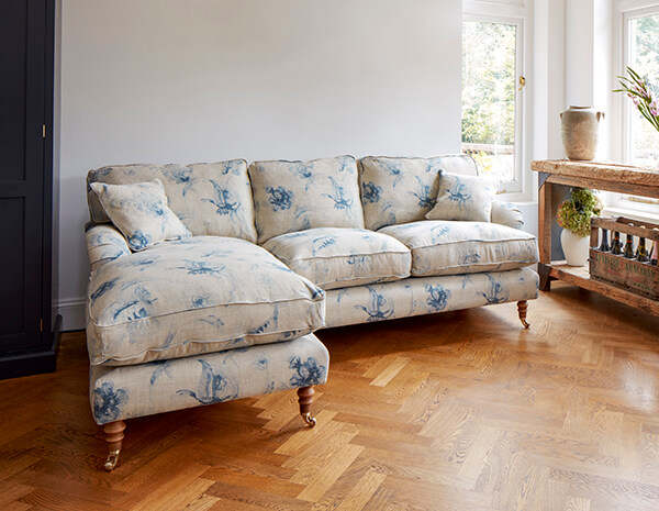 Our selection of patterned fabrics can be upholstered onto any of our handmade core range, whether you choose a comfy corner unit or a 3-seater patterned sofa.